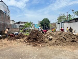 Nggak cuma bersih-bersih aja, lho. Kerja bakti kali ini juga fokus buat ngeratain tanah untuk pembangunan aula atau tempat pertemuan warga. Pasti seru banget kan kalau nanti ada tempat kumpul yang nyaman di RT ini.